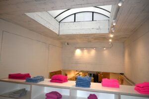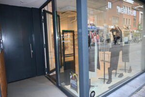 De mooie etalage is zeer praktisch! Vanuit de etalge krijg je ook al een heel mooi overzicht van de ruime winkel. In de winkel is een lichtkoepel aanwezig waardoor er enorm veel licht binnenkomt en waardoor het ook een heel aangename plaats is om in te werken.
