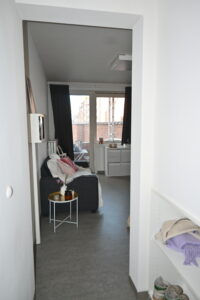 Er is ook een gemeenschappelijke keuken waar je samen met je medebewoners kan koken en eten. Dit is de ideale gelegenheid om nieuwe mensen te leren kennen en samen te genieten van een gezellig moment. Samen met je buur kan je ook genieten van een zalig moment op het terras, dat jullie delen, aan jullie kamer.