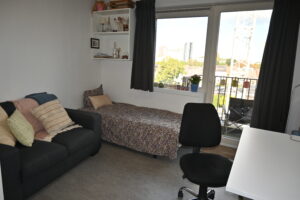 Er is ook een gemeenschappelijke keuken waar je samen met je medebewoners kan koken en eten. Dit is de ideale gelegenheid om nieuwe mensen te leren kennen en samen te genieten van een gezellig moment. Samen met je buur kan je ook genieten van een zalig moment op het terras, dat jullie delen, aan jullie kamer.