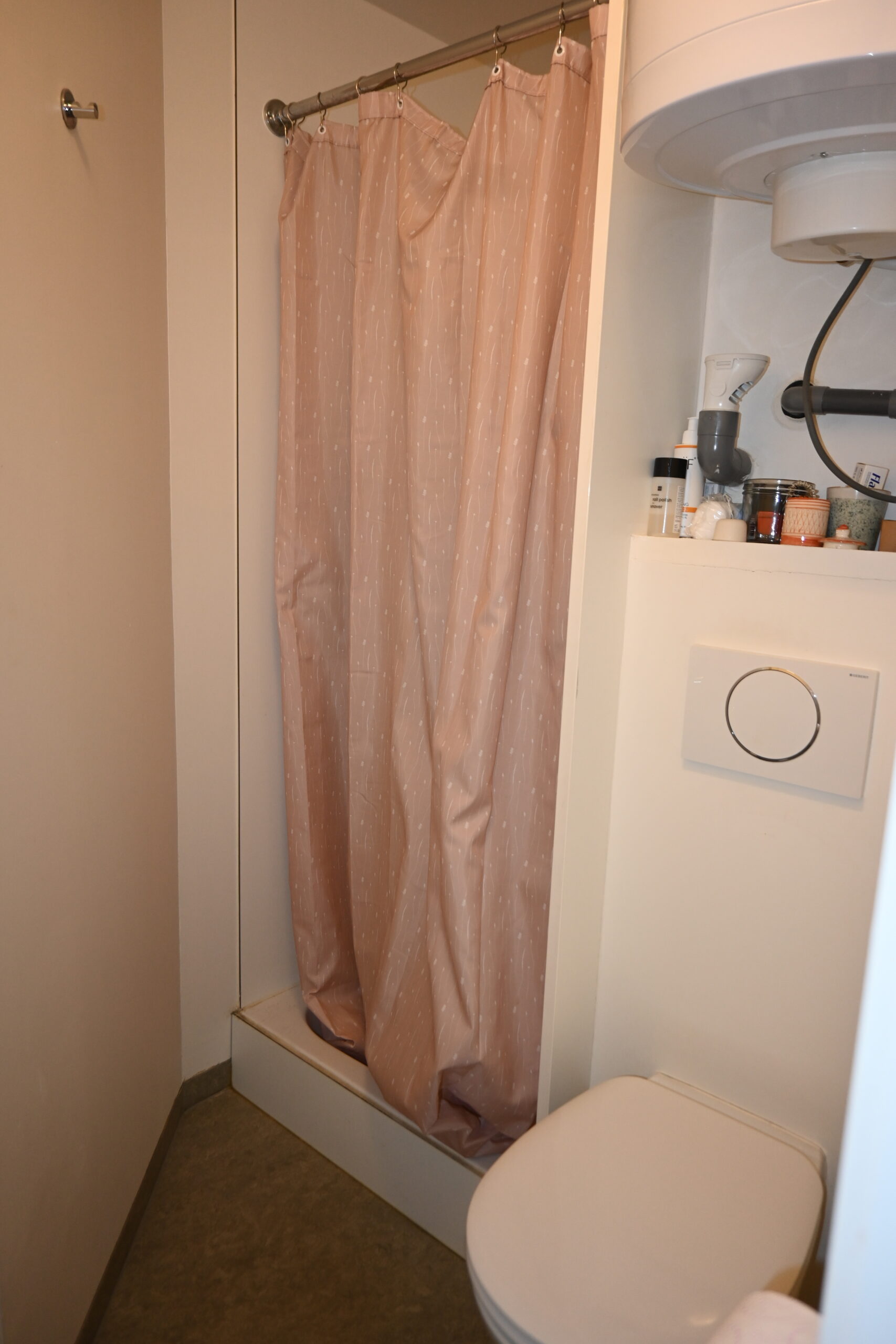 De kamer is voorzien van eigen douche, toilet en lavabo en heeft een bewoonbare oppervlakte van ... vierkante meter.