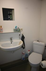 De kamer is voorzien van eigen douche, toilet en lavabo en heeft een bewoonbare oppervlakte van 20 vierkante meter. Om te slapen moet je een trapje hoger gaan, op de hoogslaper. Dit is ideaal! Je hebt meer ruimte in je kamer en je bent niet verplicht je bed op te maken voor bezoek;-)