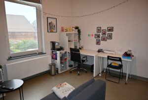 Er is ook een gemeenschappelijke keuken waar je samen met je medebewoners kan koken en eten. Dit is de ideale gelegenheid om nieuwe mensen te leren kennen en samen te genieten van een gezellig moment. Ook de tuin zorgt voor veel verbondenheid en is heel fijn meegenomen op zonnige dagen. Je moet dus niet op verplaatsing om tussendoor een luchtje te kunnen scheppen. En in de winter kan je dan weer samen lekker vertoeven in de ontspanningsruimte in de kelder.