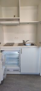 De studio is voorzien van alle nodige voorzieningen en heeft een bewoonbare oppervlakte van 27 m².