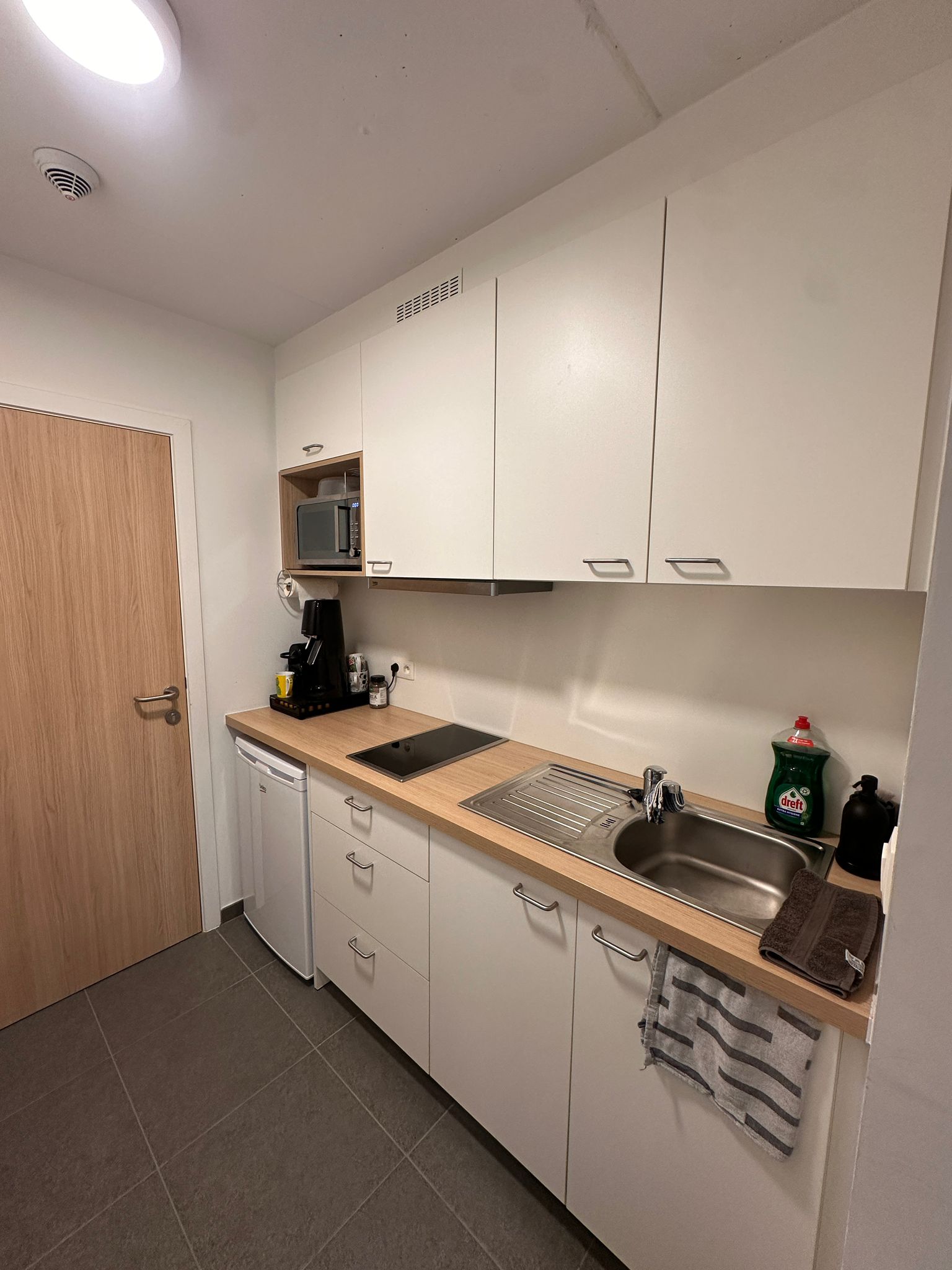De studio is voorzien van douche, toilet, lavabo en kitchenette en heeft een bewoonbare oppervlakte van 24 vierkante meter.
