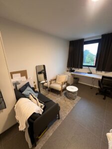 Er is ook een ontspanningsruimte waar je samen met je medebewoners heerlijk kan vertoeven. Dit is de ideale plek om nieuwe mensen te leren kennen en samen te genieten van een gezellig moment. Ook de ruimte buiten is heel fijn meegenomen op zonnige dagen. Je moet dus niet op verplaatsing om tussendoor een luchtje te kunnen scheppen.